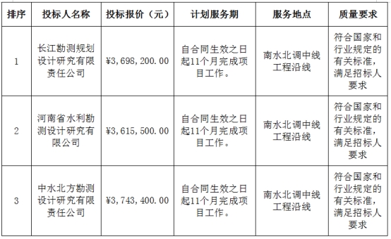 首頁 > 招標(biāo)采購 > 中標(biāo)公示南水北調(diào)中線運行安全監(jiān)測處置限值研究項目中標(biāo)候選人公示